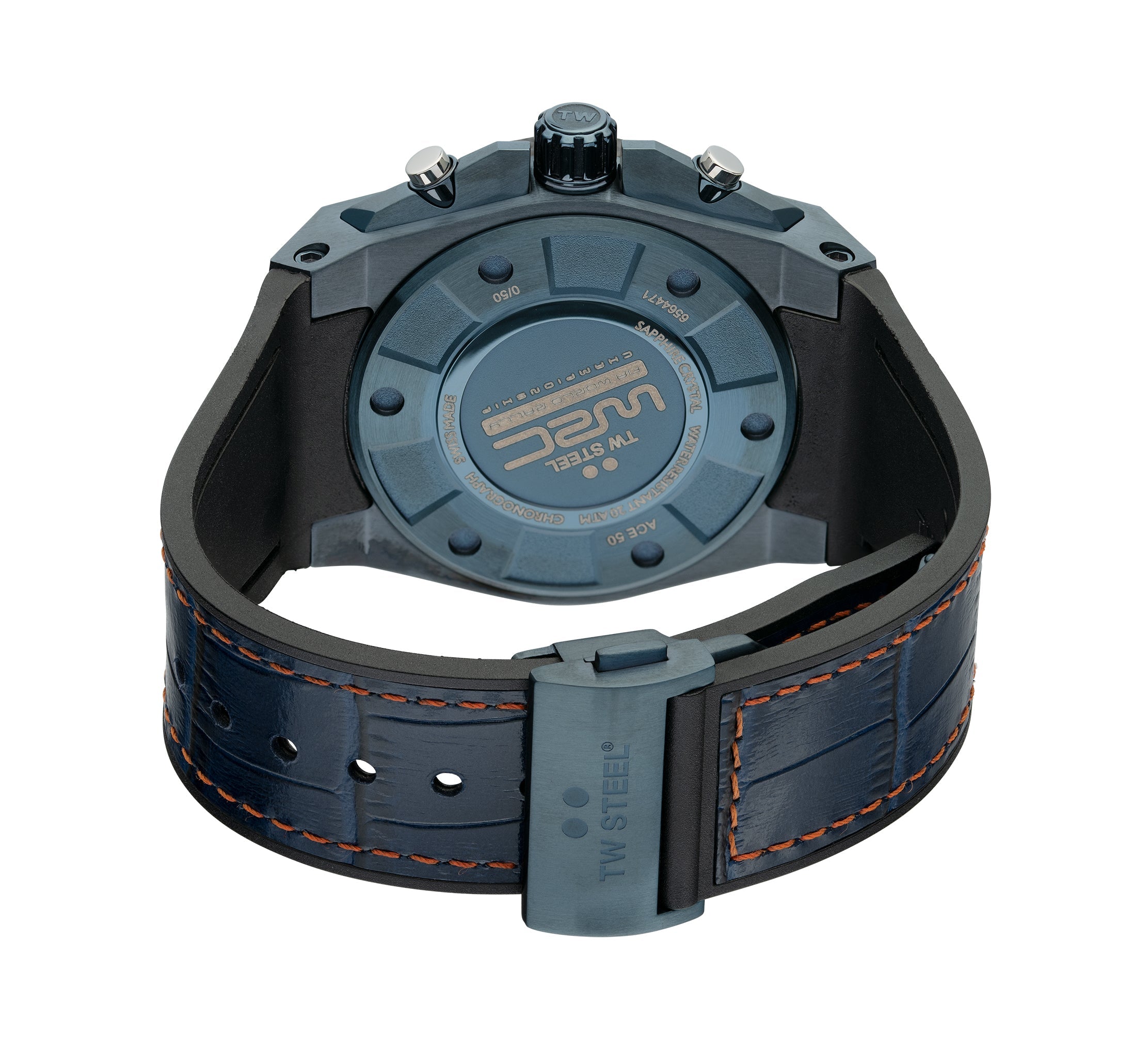 The Swiss made ACE50 1973 is powered by a Swiss made chronograph and features anti-reflection sapphire crystal, five year worldwide warranty and a dark blue dial with a unique '1973 triumph' lower chrono eye.