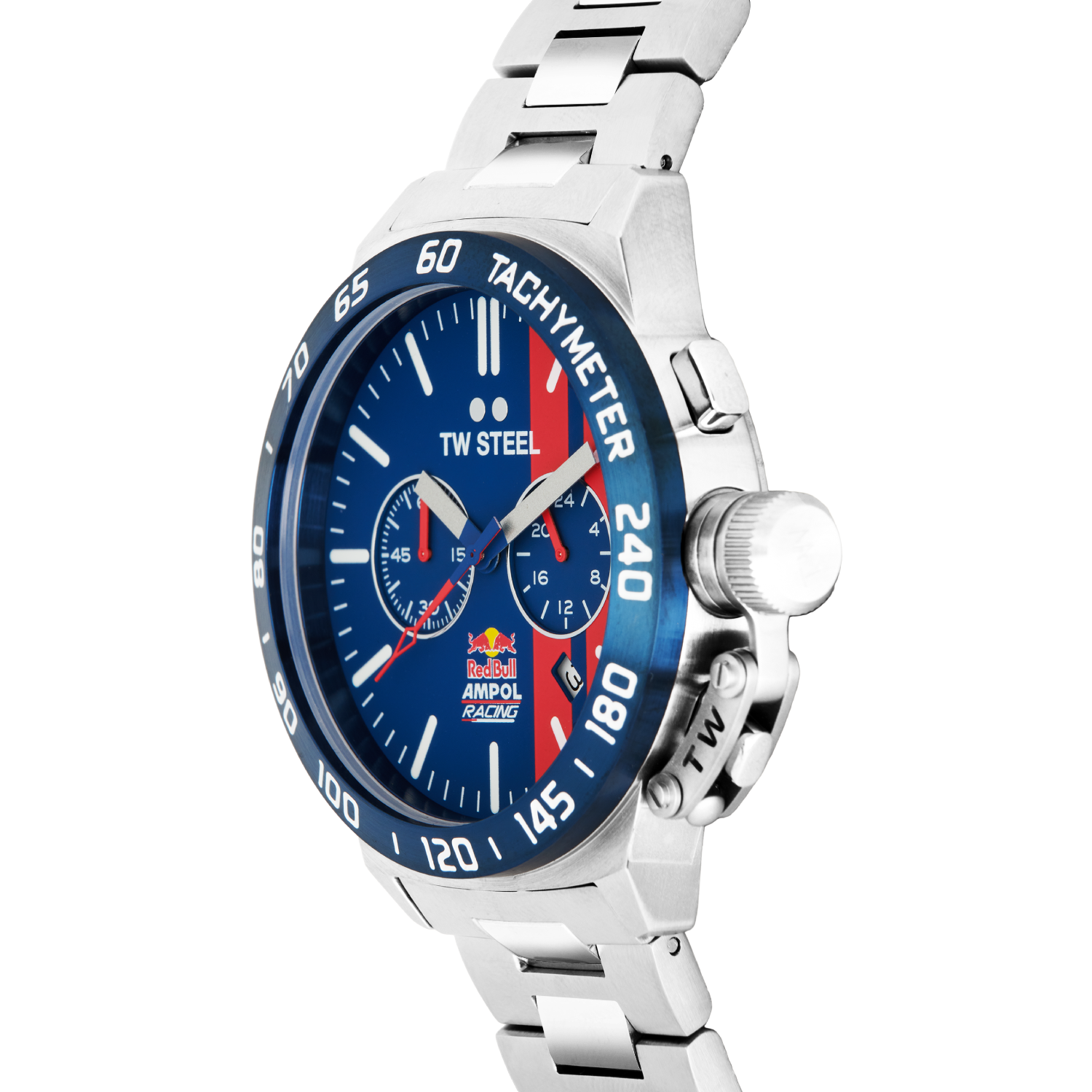 Get your pulse racing. The CS121 is powered by a big caliber chronograph movement and features a blue dial with Red Bull Ampol Racing's logo, a steel bracelet and 2 years worldwide warranty.