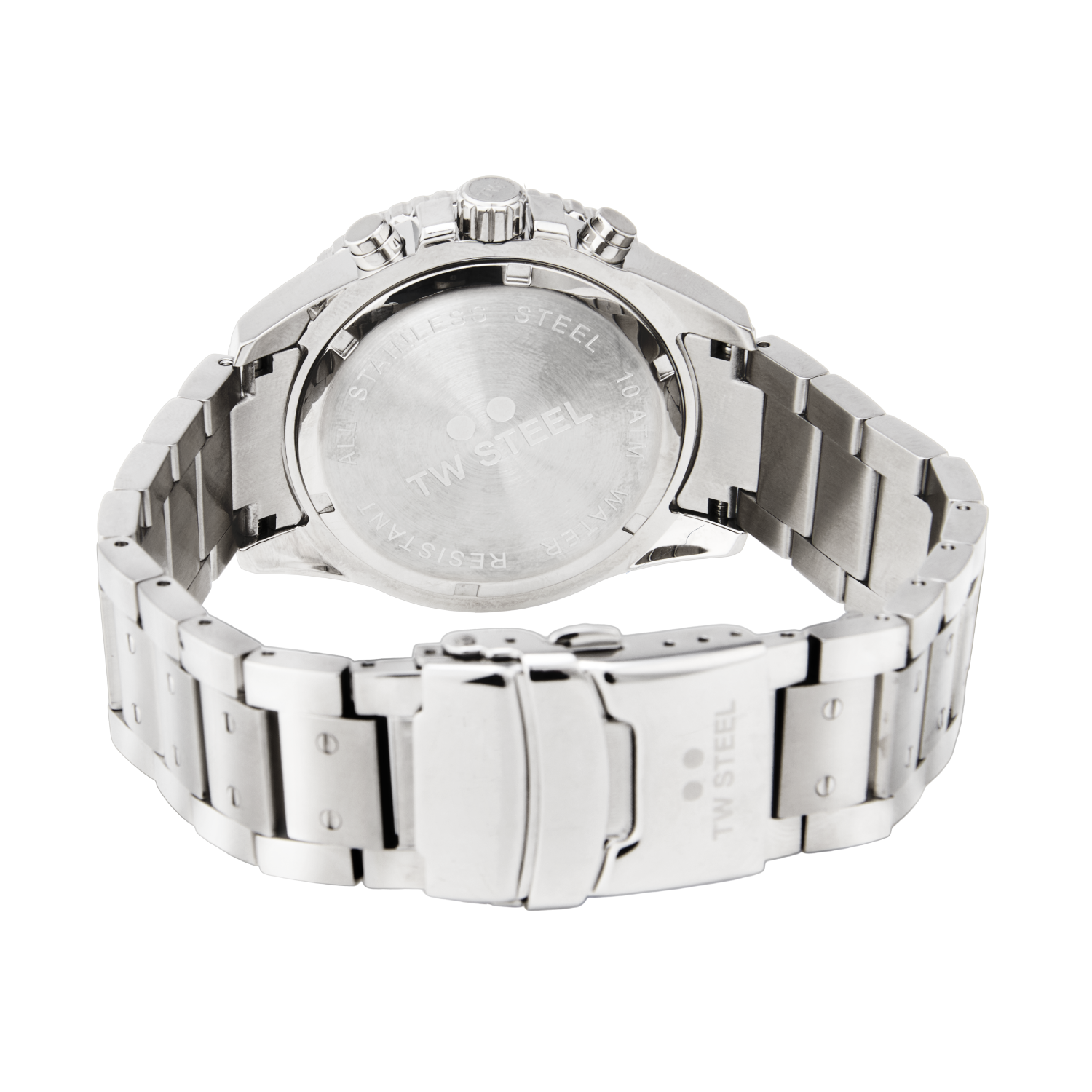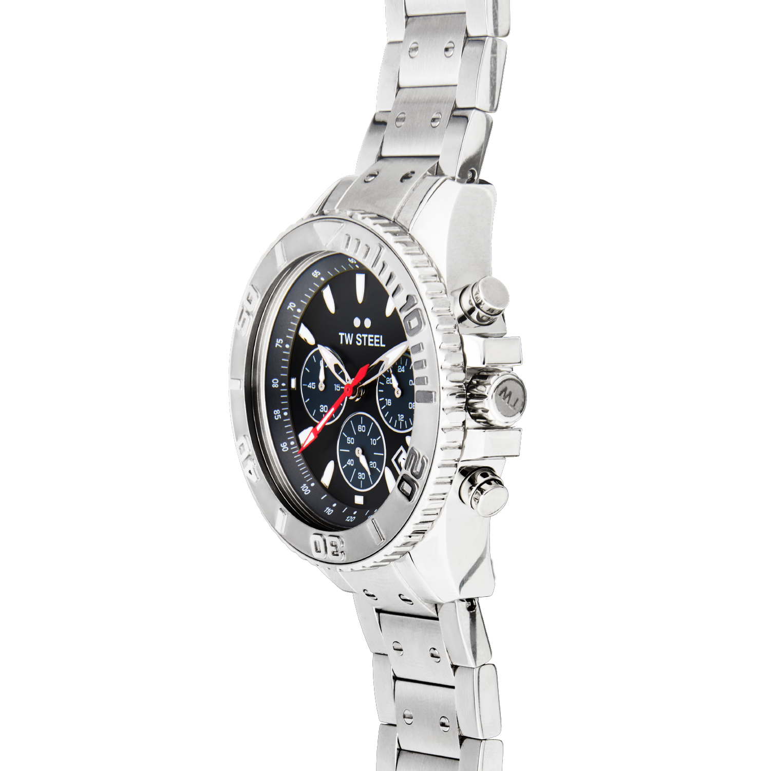 With the Vanceur Diver collection, TW Steel navigates in style. The VA5 features a chronograph with a shiny steel case, rotating diver bezel, a steel strap, 10 ATM and a 2-year global warranty.