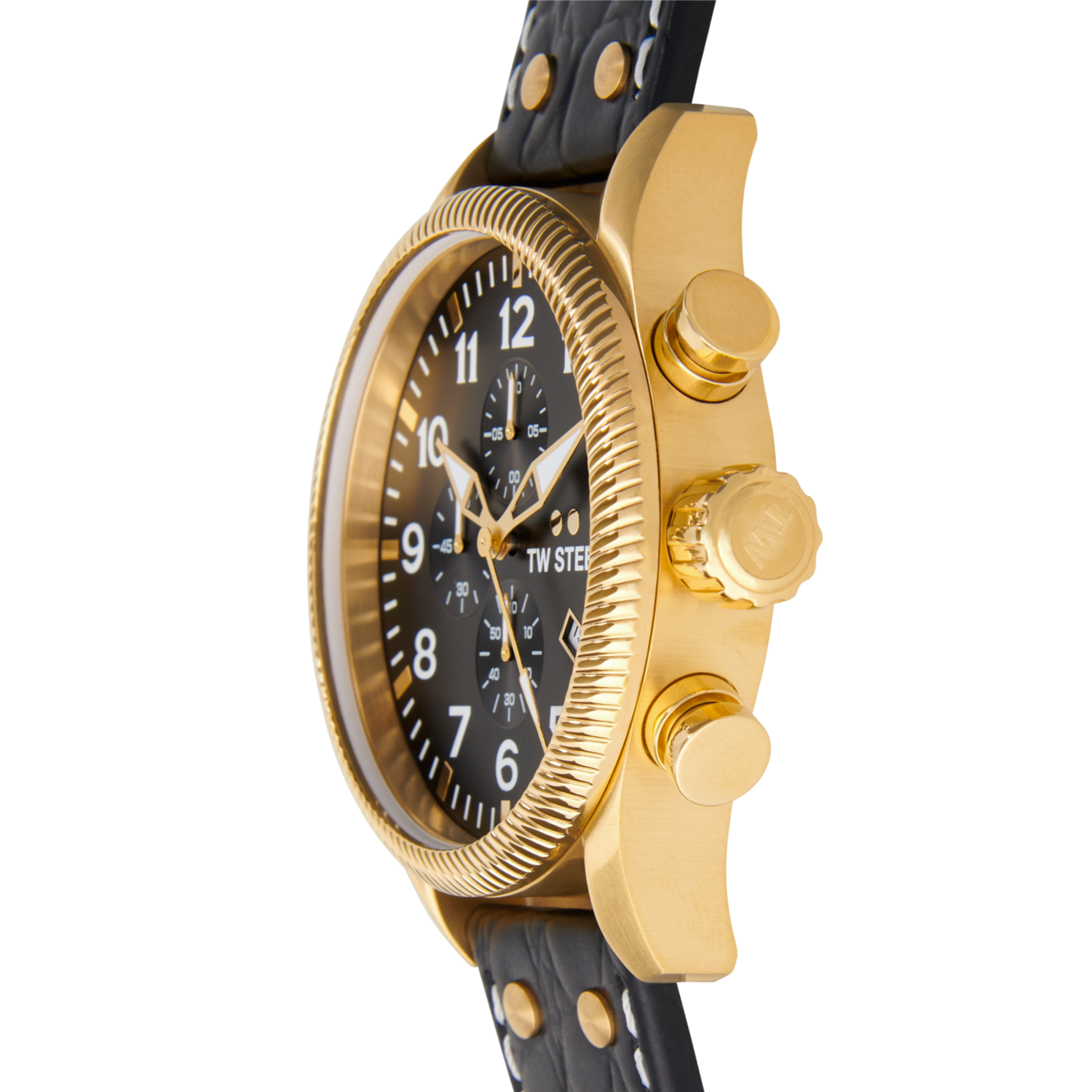Go from A to Bold with this Volante watch. This VS115 features a 48mm PVD yellow gold case, a black satin dial and a black croco leather strap.