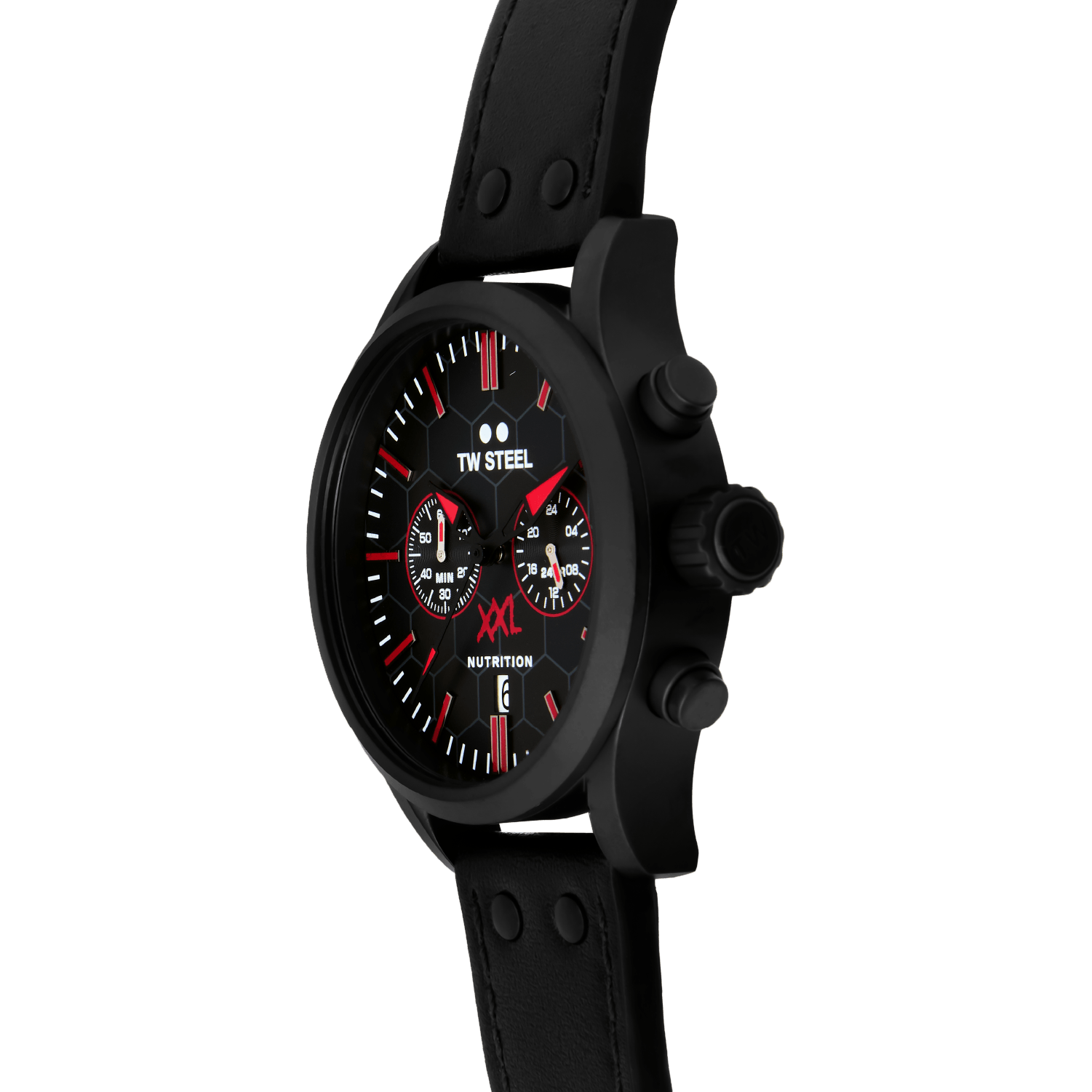 Fuel your ambition. The XXL Nutrition watch features a black hexagon dial, a matte PVD black case and bezel, a black leather strap, and is limited to 250 pieces. Crafted for bold performance and unmatched style.