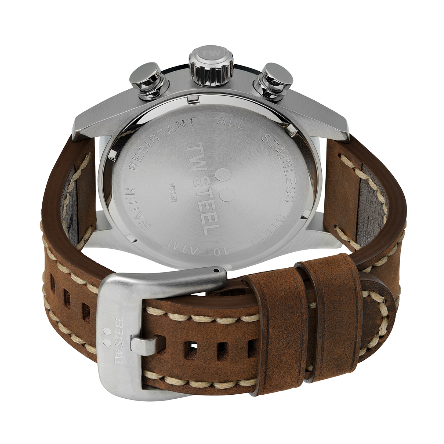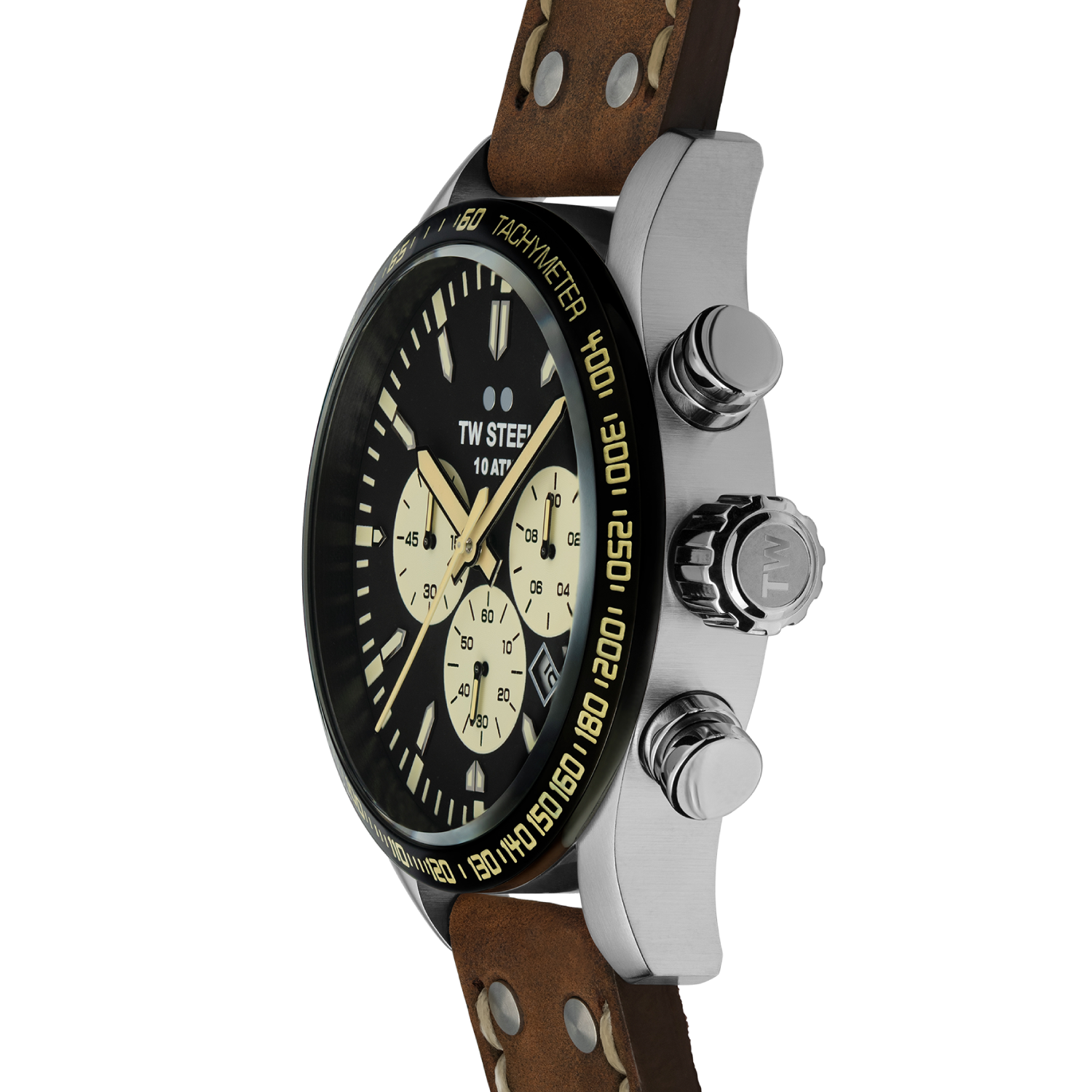 Go from A to Bold with this Volante watch. This VS120 is powered by a chronograph movement and features a 48mm steel case, a black satin dial and a brown leather strap.